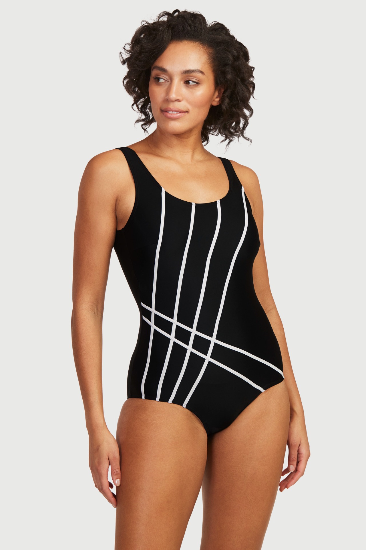 • Tyylikäs uimapuku imartelevilla raidoilla